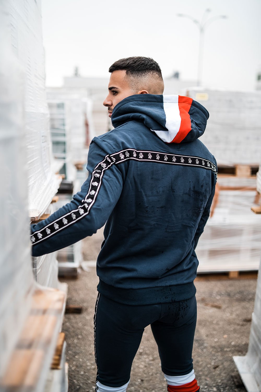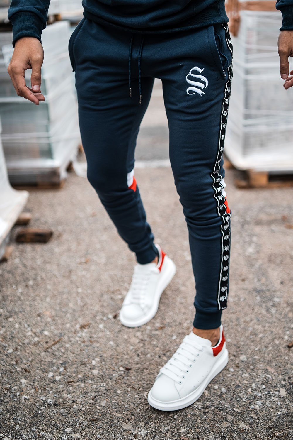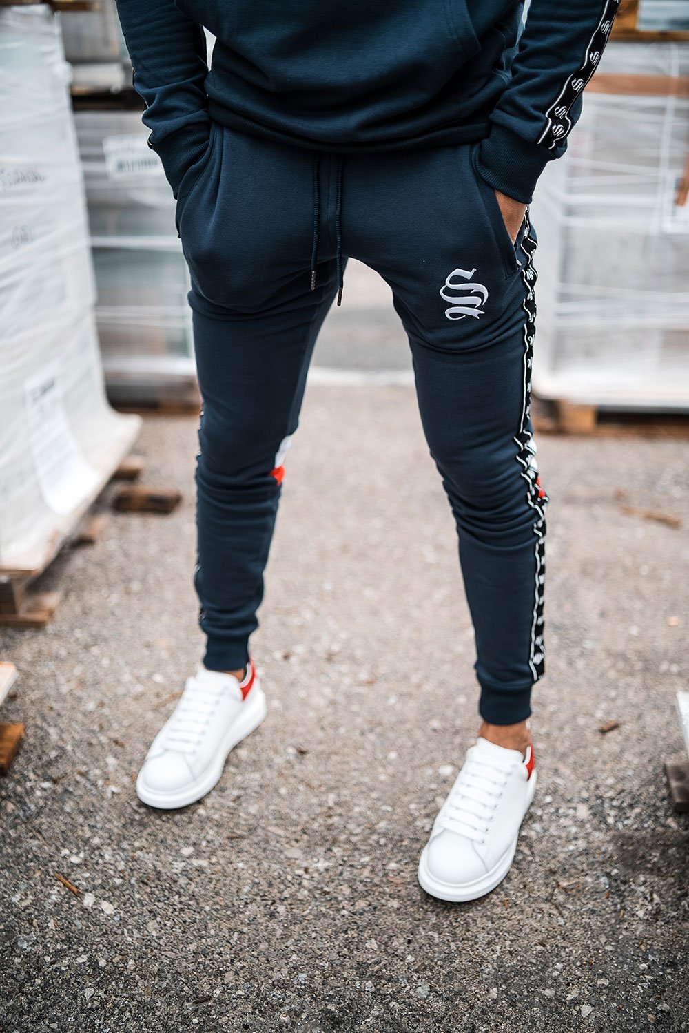 Navy Block Tape Joggers